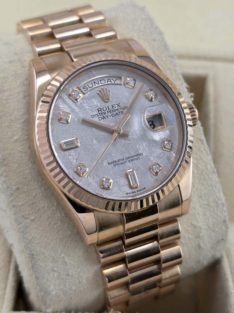 Rolex Day-Date 118235 Rose Gold Meteorite Diamond Dial